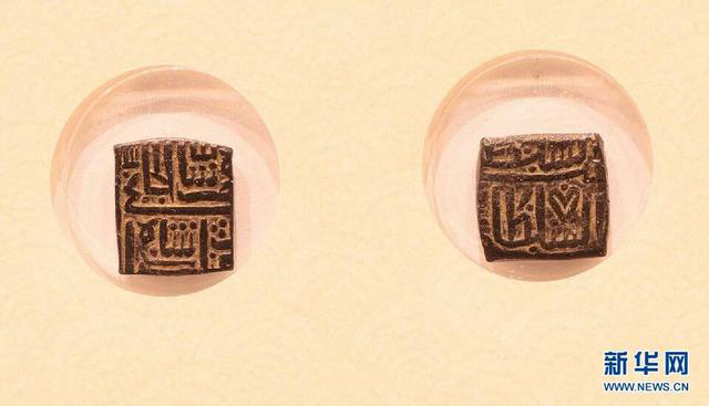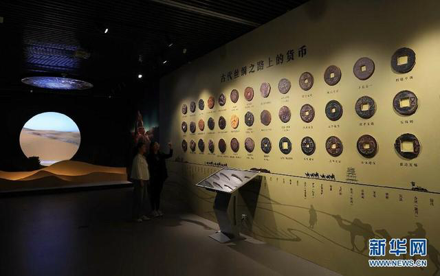 古代絲綢之路上的貨幣放大展示。新華網發(侯新建攝)