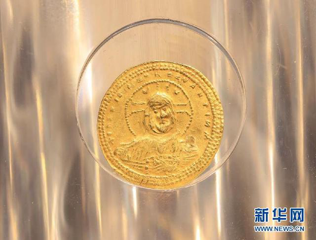 拜占庭邁克爾七世金幣(公元11世紀)。新華網發(侯新建攝)