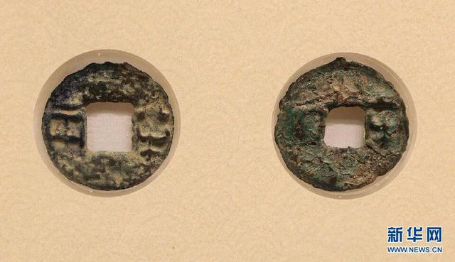 “秦半兩”,公元前221年秦始皇統一六國后實行統一貨幣改革,發行圓形方孔的秦半兩,至此圓形方孔錢作為中國貨幣的統一形制歷代王朝所延續,使用了2000余年。新華網發(侯新建攝)