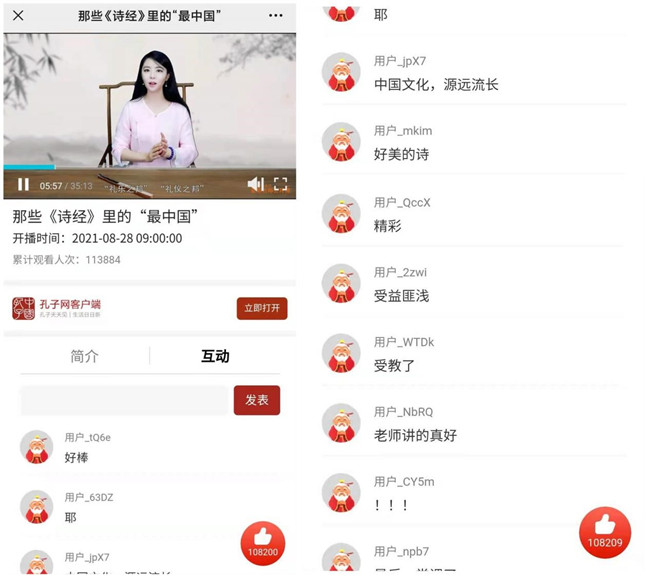 “通過今天的公開課,真的就感受到了《詩經》靈魂所在,它里面蘊藏著我們中華民族的血液?!庇^眾們在觀后感中記錄下自己的收獲。不少網友也紛紛留言表示,“中華文化真是源遠流長”,“聽了這節課感覺受益匪淺”,“要好好去學習傳統文化,把優秀的傳統文化傳承下去”。
