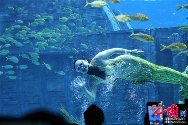 據了解,融創海世界是集觀賞、科普、演藝、娛樂于一體的多功能海洋文化體驗中心,既有海洋動物展示互動,海洋主題游樂設備體驗,還有精彩的演藝活動。其中特別推薦人魚表演,在表演中游客可以見到美麗人魚的曼妙舞姿,可以和她們揮手互動,甚至穿上潛水裝備,深入海洋童話之中。