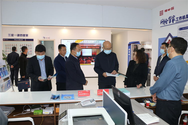 隨后一行人參觀了相公莊街道法治文化公園,并視察街道“相里鄉親”基層治理平臺。先后走進“益養空間”、“睦鄰中心”、“議事大廳”、“法微網格”四個治理單元,通過“五治”融合和聯動詳細了解農村普法、法治文化陣地建設、鄉村公共法律服務、“三官一律四管家”等法治建設情況,并給予充分肯定。