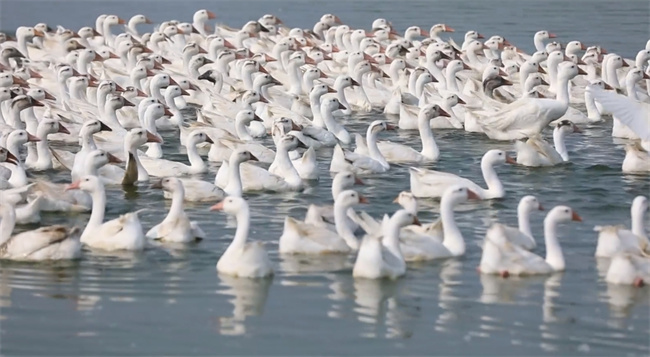 為了打消村民的顧慮,當地幫七個村成立了合作社,引入第三方財務公司,并建立起了公共管理平臺,每個村選出兩位代表隨時監督。很快,7個村共同出資100多萬元,建起了4個高標準養殖場,幾個月后,頭一批三萬只“幸福鵝”出籠,剛上市就被搶購一空,一下子帶來了二十多萬元收益。為了更高效地利用養殖大棚,棚里還建起了魚、鵝混養的生態養殖模式。山東省濟寧經開區疃里鎮四合新村黨支部書記狄宣曾說:“鵝在池塘里活動、嬉戲,它能給魚增加氧氣,魚又把鵝的糞便作為一種食物,又凈化水,它就形成了一種鵝魚共生的一種良好的循環模式?!?/p>