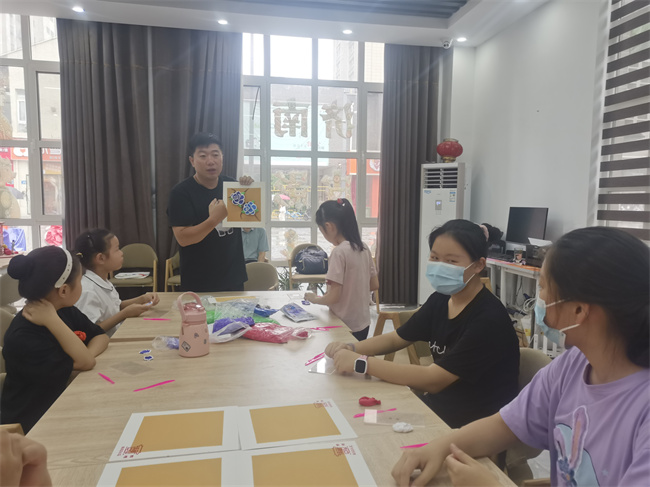 7月6日下午,在市中區國家非物質文化遺產魏家莊傳承基地,濟南面塑協會副會長兼面塑傳承人于恩朝如往常一樣正在給社區孩子們上公益面塑課程。七八個孩子圍坐著,一邊聽著于恩朝的示范講解,一邊拿起面團有模有樣的學起來,不一會兒,孩子們手中也慢慢做出了一片片牡丹花瓣。