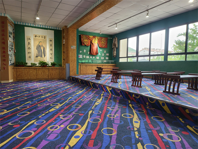 走進濟南市中區愛都小學,從門口懸掛卷軸狀的“愛都賦”,教室走廊過道張貼的孩子們畫的“我與孔子的對話”漫畫海報,到孔子學堂里展示的古代服飾文物,再到每一間教室中的儒家典籍圖書角……校園空間處處都流動著傳統文化的氣息。