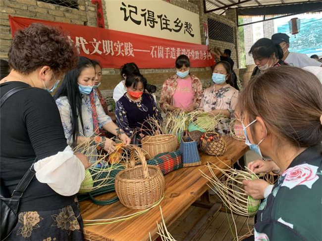 近日,“新時代文明實踐——石崮手造非遺學堂助力鄉村振興”手造編織培訓主題活動在市中區石崮寨景區舉辦,省工美柳編傳承人陳敏老師現場對石崮溝村民及游客授課。