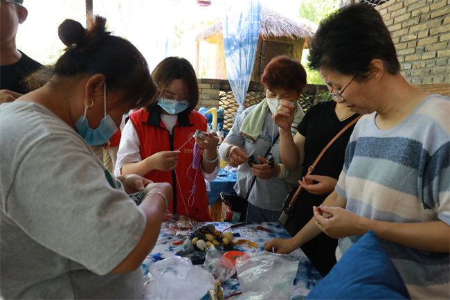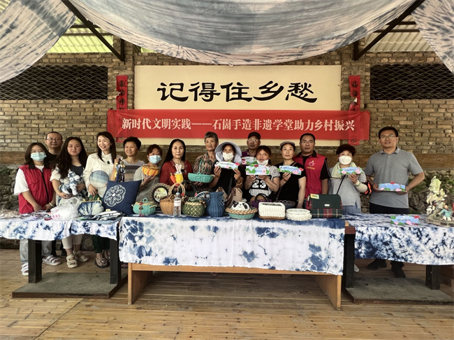 近年來,石崮溝村探索打造“石崮手造”品牌,興非遺,辦學堂,開集市。邀請非遺傳承人前來開班,當地村民走進“石崮手造非遺學堂”,了解非遺文化,傳習非遺技藝。村民在掌握手藝、通過考核后,變成傳習人,進而將手工藝結合當地特色產品、元素,制作手造產品,并在就地開辦的“石崮手造集市”中展示銷售,打通優秀傳統文化融入鄉村旅游經濟發展的連接點,讓非遺技藝在秀美鄉村展現生機與活力,真正實現“創造性轉化,創新性發展”。