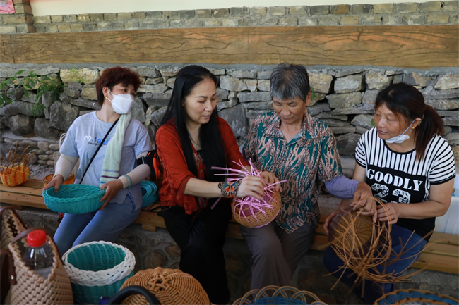 非遺傳人向村民教授國家級非遺技藝草柳編