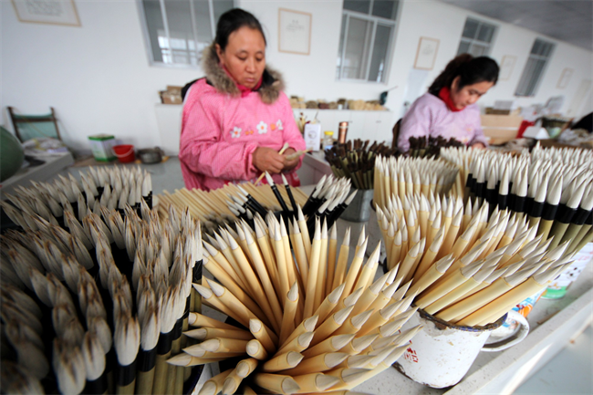陰平毛筆制作技藝源于東漢,已有兩千余年發展歷史。以選毫講究、配料嚴密、制作精細為本,以筆的“尖、齊、圓、健”四德為標準,追求卓越之精品。2016年,陰平毛筆制作技藝被列入山東省非物質文化遺產名錄。如今,依托陰平毛筆制作技藝打造的山東集律魯筆文化產業基地,已發展成為棗莊非遺文化產業的領頭羊。