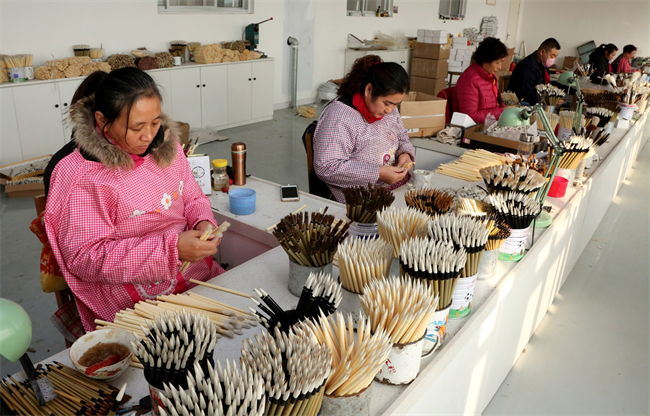 去絨、燙毛、齊毫、圓筆、披蓋毛、扎筆頭……經過108道工序一支陰平魯筆才算真正制作完成,是名副其實的“山東手造”。