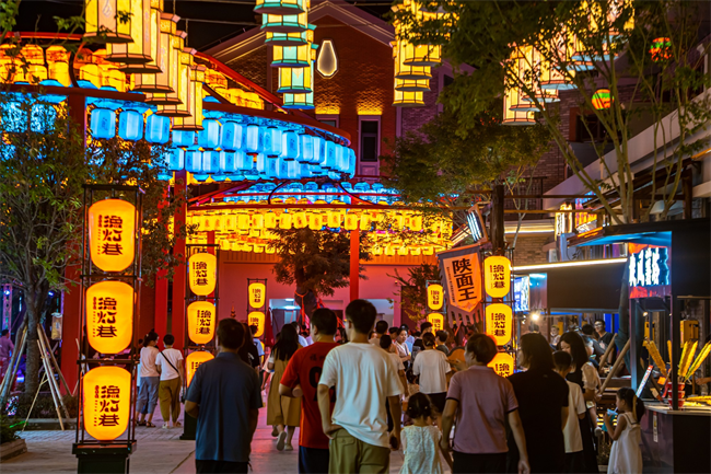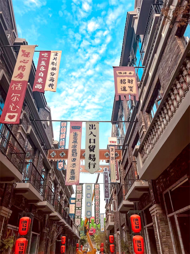 漁燈巷,以千年運河文化和漁燈文化為引領,以中華美食業態為軸心,共架設萬余盞各類景觀燈籠和燈組,打造了百余處街區和運河景觀,以夜景、游樂、演藝、非遺、文創、高端酒店等多種業態相融合,旨在以現代化的呈現方式,將曾經的運河繁華重新演繹呈現。