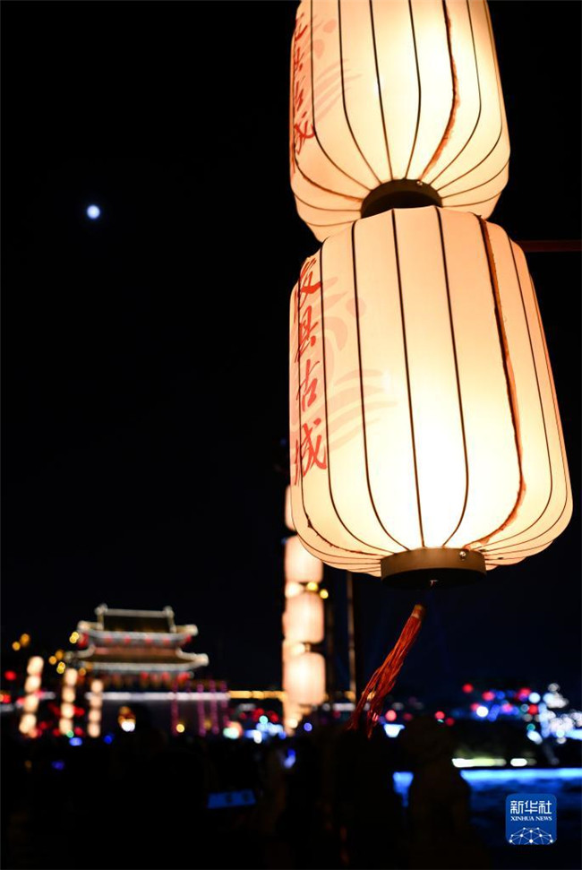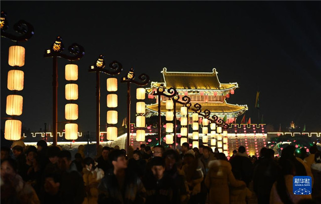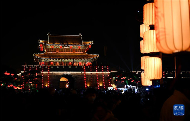 當日是農歷正月十五元宵節,在河南省??h古城里,古色古香的建筑配合璀璨燈光,吸引眾多游客沉醉其中,度過難忘的元宵夜。