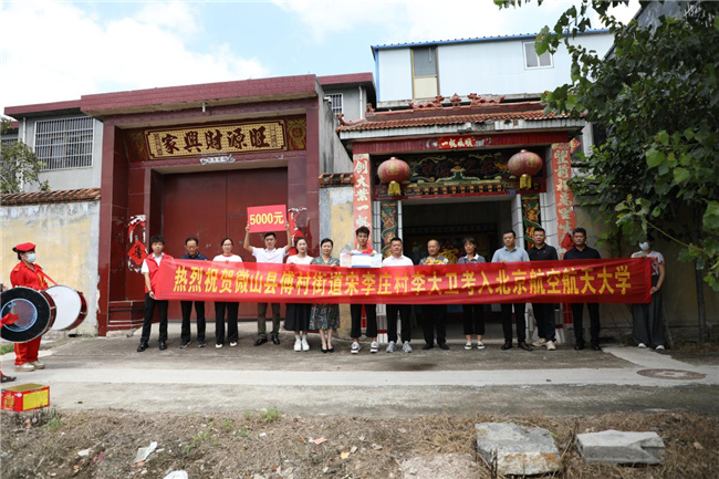 鑼鼓喧天送喜報,歡歌笑語慶輝煌;高考學子創佳績,金榜榮譽送家門!8月1日,微山縣傅村街道為宋李莊村李大衛同學送去高考喜報并頒發助學獎金。手捧鮮花,身戴大紅花,李大衛同學臉上洋溢著幸福而激動的笑容,大家為他以668分的優異成績被北京航空航天大學 (工科實驗班類)錄取,感到驕傲并紛紛表示祝賀,勉勵他在今后的大學學習中,要以夢為馬、不負韶華,站在新的起點上,更加努力學習,祝愿他前程似錦、未來可期!李大衛表示:“到大學以后將加倍努力,學好專業知識,奮發拼搏,爭取獲得更加優異的成績,為家鄉爭光?!?/p>