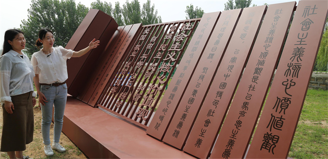 萬物有詩寫文明。黃河是中華文化的搖籃,古往今來,眾多詩人歌者都吟誦過黃河、歌唱過黃河。齊河融合詩詞文化,在“黃河吟”文化廣場,選取10余位中國著名詩人描寫黃河的20余首著名詩詞,采用景觀小品、詩詞牌、詩詞卷軸等形式,建設黃河詩林文化主題公園,定期舉辦采風、詩會等活動。在“黃河頌”文化廣場,依托“紅心一號”文化廣場“紅心一號”吸泥船模型、黃河文化九龍柱等標志性景點,講述治黃故事。齊河還搭建5464黃河步道,將沿黃九省、山東九市黃河文化、民俗文化、地域特色等融入空間和游線,建設美德誠信園、“最美黃河人物”展示游園,引導群眾感悟“最美”精神、感受“家住黃河邊”新體驗?!吧眺绷⒛緸樾?、季布一諾等美德誠信故事告訴我們誠信的重要性。誠信是一種美德,在社會生活中,做什么事都要言而有信,不輕易改變,否則就會失去他人對自己的信任?!眮碜詽系挠慰婉R蓮看到黃河頌廣場上的美德誠信故事很受啟發。