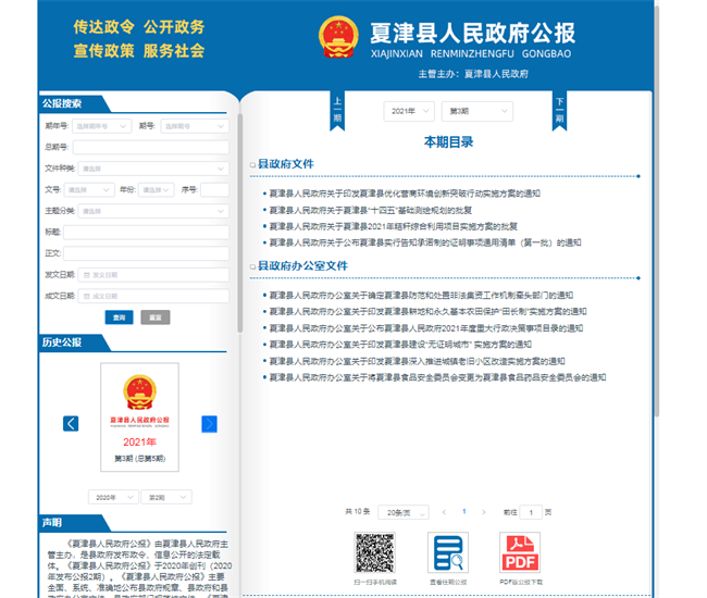 建設政府公報數字系統,提升公報目錄導航和內容檢索等服務,優化政府公報電子版閱讀界面,提供word與pdf等多格式閱讀、下載、線上打印,實現與紙質版內容格式百分百一致。推出適合移動電子設備展示的電子版,滿足手機用戶需求,提升用戶體。歸集縣政府公報創刊以來的14期300余件政府文件,實現政府文件按期號、文件種類、文號、主題、發布日期等14種屬性交叉精確查詢,方便公眾查閱下載和開發利用。上線運行政策文件庫系統,對政策文件集中統一管理發布,歸集縣政府近年來印發的文件150余件,做好文件分級分類展示,提升群眾查閱便利性。