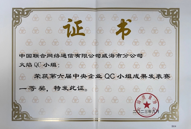 近日,第六屆中央企業QC小組成果發表賽傳來喜報,中國聯通威海市分公司火焰QC小組選送課題《提高5G+MEC的智慧平臺標簽識別準確率》,憑借創新性的課題、良好的成果價值,獲得與會專家的高度認可,在全國80多家央企的220個成果中脫穎而出,榮獲第六屆中央企業QC小組成果發表賽一等獎,同時獲得2023年全國優秀質量管理小組稱號,成為全國通信行業獲此最高級別獎項的三個QC成果之一,也是山東通信業唯一獲獎單位。