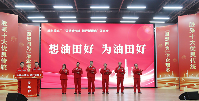 1月26日上午,為更好地繼承和發揚老一輩石油人的革命精神和優良傳統,保持石油人的紅色底蘊和戰斗情懷,全面推動“四想四為”為核心的治企理念落地生根,為國家的“能源飯碗”裝入更多的“勝采油”,勝利油田勝利采油廠隆重舉辦“弘揚好傳統,踐行新理念”發布會。