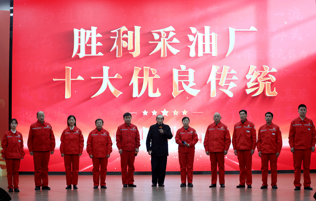 在首先進行的采油廠“十大優良傳統”發布儀式上,十位發布者一同登臺亮相,現場依次發布“十大優良傳統”?!拔覟樽鎳I石油”“高度覺悟、嚴細成風”“爭第一、創一流、奪冠軍、站排頭”“勘探無禁區,開發無止境”“負責任、有能力、敢擔當、受尊敬”“咱們工人有技術才更有力量”“勇做探路者,永當先行者”“抓基層,打基礎”“員工的心,企業的根”“用創新成就勝利,讓明天勝過今天”。這十大優良傳統,是采油廠60年發展歷程的豐厚積淀,是全體勝采人共同的寶貴財富,影響激勵著一代代勝采人,引領和保障了采油廠各項事業闊步前行。
