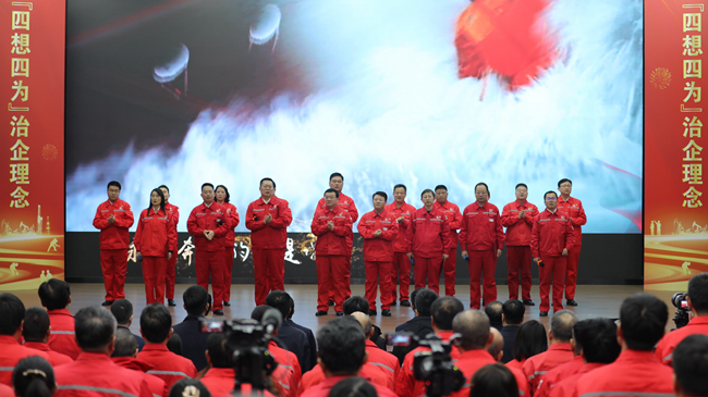 在隨后進行的“四想四為”治企理念發布儀式上,廠領導與三十位發布人分四組依次上臺,圍繞“四想四為”治企理念,分別發布了“想職工好,為職工好”十項措施、“想基層好,為基層好”十條承諾、“想勝采好,為勝采好”十大規范、“想油田好,為油田好”六種擔當?!八南胨臑椤弊鳛椴捎蛷S新時期治企理念體系,是采油人站在新起點、奮進新征程的“沖鋒號”,是廠黨委和采油廠扛牢政治責任,強化政治擔當,凝聚思想共識,堅持守正創新的生動體現。