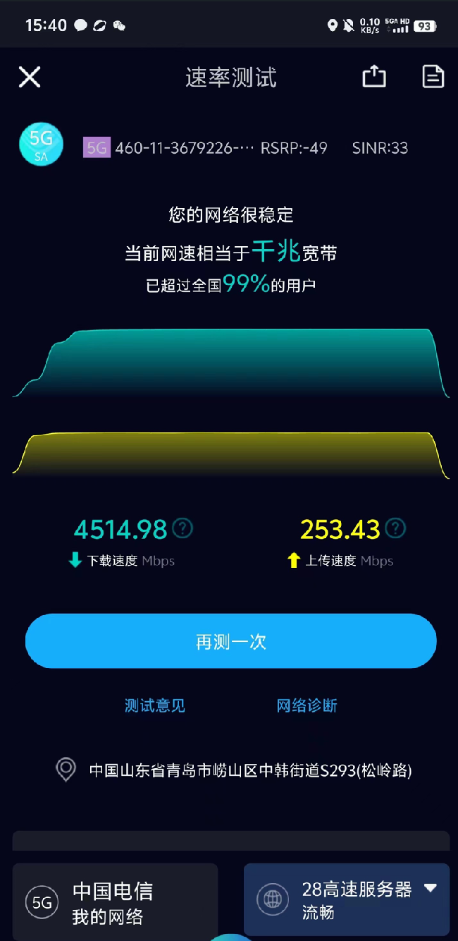 圖2:青島科技大學5G-A測試截圖(speedtest)
