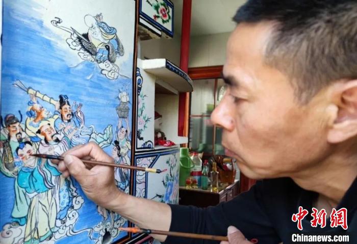 “灶頭畫的特點就是不打底稿,而且要趁著灶頭剛打好,表面材料還潤濕的情況下,完成繪畫?!壁w生波介紹道,這樣一來,里面的磚頭吸收表面水分的同時,也將灶頭畫顏料吸進去,這樣的灶頭畫經久耐用,幾十年不會褪色。