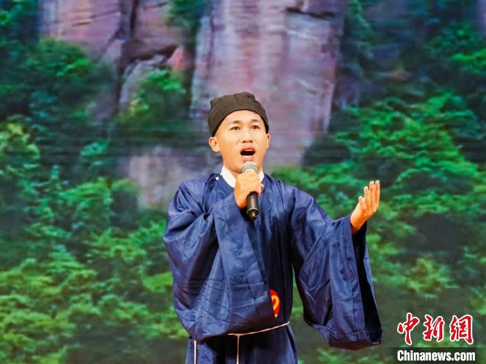 7月15日,在比賽中,來自廣西師范大學國際中文教育專業的緬甸籍留學生王杰斯身著漢服,手拿折扇,吟誦著中國唐代著名詩人李白的傳世名篇《蜀道難》。
