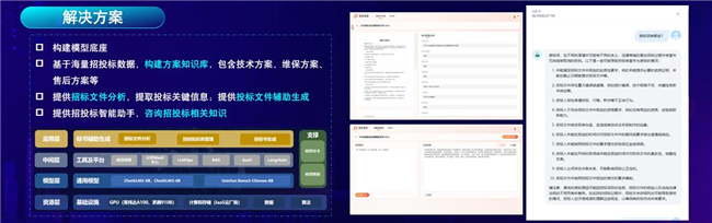 通過對歷史投標方案中需求分析、技術方案、運營運維、售后服務等部分進行知識拆解,構建投標方案知識庫;通過國家及地方發布的招投標政策法規、制度規范等,構建招投標知識庫;實現招標文件分析,提取項目名稱、投標時間、招標編號等重要信息;根據招標建設要求,自動生成投標方案;同時,打造招投標知識問答助手,通過聊天的形式回答用戶的招投標問題。目前,標書輔助系統已賦能山東聯通政企投標工作,開啟智慧投標高效之路。