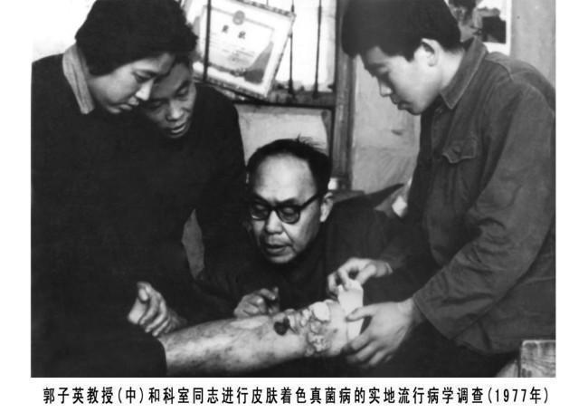 要攻克著色芽生菌病,必須先走進流行區進行調查研究?;谶@一認識,1975年起,郭子英教授親自帶領年輕醫生王承顧等深入章丘地區,走村、穿巷、入戶,邊調查邊探索治療方案。一年間,跑遍了整個章丘所有村莊、街巷,獲得了大量的流行病學、臨床學資料和100多株供深入研究的著色真菌?;诖罅康恼{查研究,1977年,郭子英在《皮膚病防治研究通訊》(后更名為《臨床皮膚科雜志》)上連續發表《山東章丘縣著色真菌病流行病學調查報告》《166例著色真菌病臨床分析》和《著色真菌病的治療》三篇論文。1978年,其研究成果“皮膚著色霉菌病流行病學與臨床分析”獲全國醫藥衛生科學大會獎。