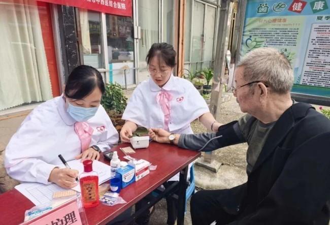 護理團隊為村民提供了血壓血糖測量、心電圖檢查和耳穴壓豆等中醫特色服務,讓群眾在家門口享受到三甲醫院的優質醫療資源,真切感受到黨組織帶來的溫暖與關懷。