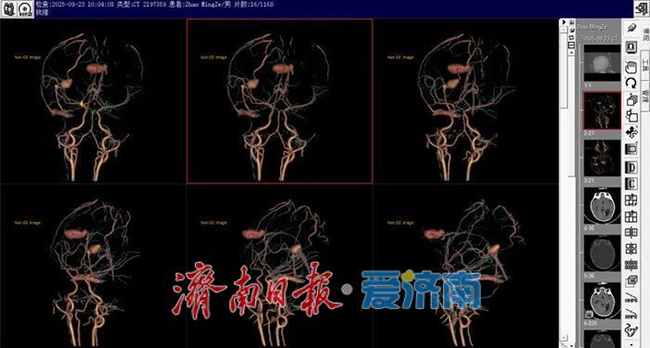 隨后,小明被緊急轉診至山東大學附屬兒童醫院神經外科。神經外科主任王廣宇帶領團隊立即為患兒開展進一步檢查,結果顯示小明腦內不僅有1處巨大血腫,還同時存在2處大型動脈瘤樣突起——這一復雜病情正是導致其顱內血腫的關鍵原因。