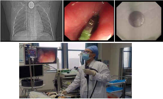 呼吸介入科閆秀麗主任緊急聯系了消化科李華主任會診,同時,麻醉科等相關科室也做好了急診內鏡的準備。經過緊張而有序的術前準備,在麻醉、護理等多個學科團隊的配合下,薛寧主任利用胃鏡迅速確定了異物的種類,并順利將其取了出來。不幸中的萬幸,原來是一枚1元錢硬幣,由于誤服時間較長,雖然局部食管有壓迫性損傷,但很快就可以恢復。
