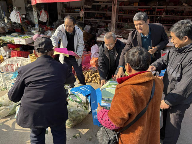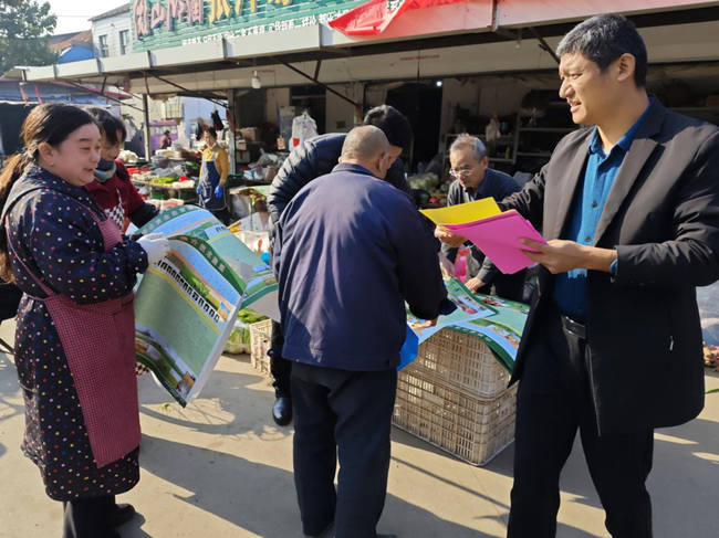為精準助力秋種生產、把實用農技送到農民心坎上,11月4日,濟寧市微山縣農業農村局科教科、農產品質量監管科聯合驩城鎮農技站,走進熱鬧的驩城大集,一場接地氣的“科技趕集”活動熱鬧開場。農技專家們化身“擺攤人”,帶著滿滿的“農技干貨”,將專業服務送到了群眾家門口。