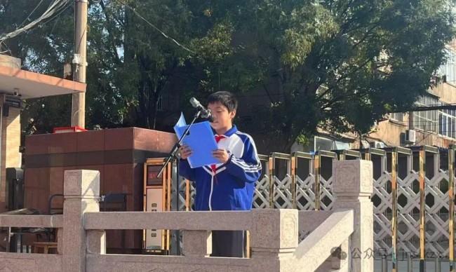 隨后,學生代表亓子乾同學進行國旗下演講。他以《認真踏實,備戰期中》為題,結合自身學習感悟,分享備考方法:課堂上緊跟老師復習節奏,將模糊知識點逐一“清零”;課后獨立完成作業、及時復習,通過整理錯題本讓每道錯題成為進步階梯;同時合理規劃時間,關注薄弱科目。他提到,期中考試不僅是知識的檢驗,更是證明自我的機會,鼓勵同學們懷揣對理想成績的渴望、對父母師長的感恩,以專注態度攻克學習中的枯燥與挑戰,在考場上書寫精彩。