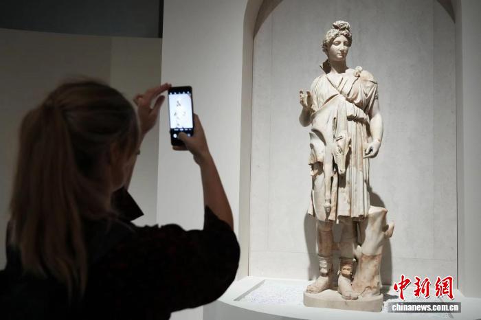 展廳里,宙斯(朱庇特)雕像、波塞冬(尼普頓)頭像等近20件大型神像,揭示出古羅馬人對古希臘神話的“創造性轉化”。其中一件狩獵女神阿爾忒彌斯(狄安娜)雕像,文物保護員已鑒定出127件不同的大理石碎片,反映出制作者的高超技藝。