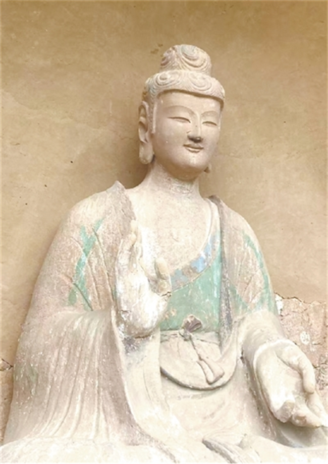 麥積山第44窟窟龕塑像,其表情被譽為“東方微笑”。杜曉帆供圖
