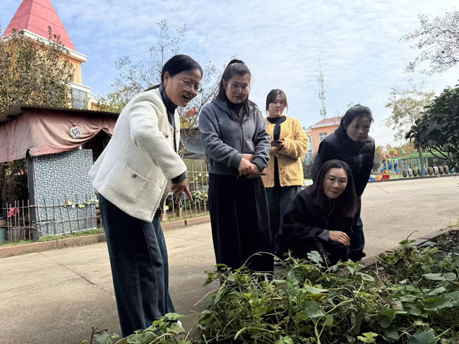 隨后,孩子們分組開展的戶外自主游戲成為本次觀摩的核心亮點。在體能游戲中,孩子們攀爬、跳躍、平衡,盡情釋放活力;在自然探索中,他們觀察植物、撿拾落葉,感受自然之趣;在合作游戲中,小伙伴們分工協作、互幫互助,體驗團隊力量。參觀教師們深入游戲現場,近距離觀察幼兒的游戲狀態,詳細了解中心幼兒園在戶外活動主題生成、游戲進階指導、幼兒個性化發展支持等方面的實踐經驗。
