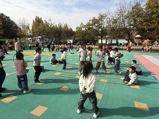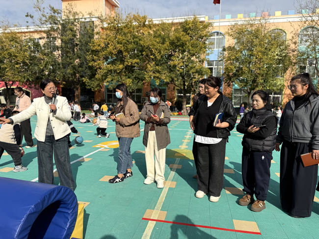 活動中,在中心幼兒園楊毅的帶領下,實地察看了園區戶外游戲環境創設。從充滿趣味的體能挑戰區、創意十足的自然探索區,到兼具操作性與教育性的建構游戲區,錯落有致的活動空間、豐富多元的游戲材料,以及孩子們在活動中展現出的自主探究、合作分享精神,給參觀人員留下了深刻印象。大家不時駐足觀察,用鏡頭記錄下精彩瞬間,圍繞活動設計、材料投放、安全保障等問題與中心幼兒園教師展開即時交流。