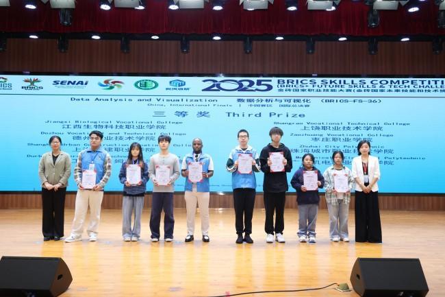 11月2—6日,2025年金磚國家職業技能大賽數據分析與可視化賽項中國賽區國際總決賽在廣東建設職業技術學院清遠校區舉辦。由棗莊職業學院經濟與信息技術系教師關靜指導的劉浩宇同學,在137支中外參賽隊的激烈角逐中表現亮眼,最終斬獲三等獎。