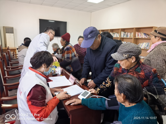 護理團隊為村民提供血壓、血糖測量、心電圖檢查及耳穴壓豆等中醫特色技術服務,讓群眾在家門口享受到三甲醫院的專業診療,真切感受到黨組織帶來的健康關懷。