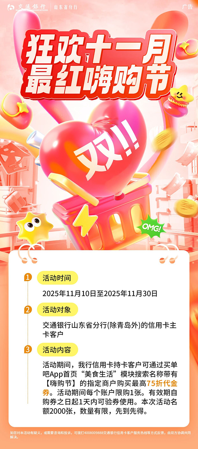 福利:買單吧“美食生活”-代金券搜【嗨購節】,搶天天75折代金券!